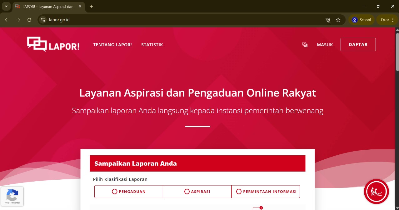 - Lapor!; aplikasi untuk menyampaikan aspirasi masyarakat umum yang dikelola oleh Sekretariat Negara