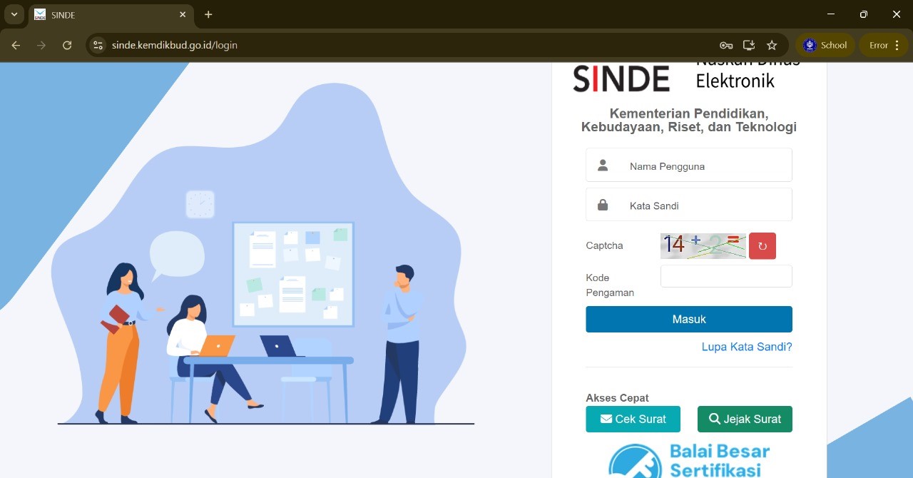 - sinde; aplikasi pengelolaan administrasi persuratan yang dikelola oleh Kementerian Pendidikan dan Kebudayaan